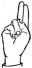 На ћирилици написано ОЛГА ЧОБЕЛИЋ састоји се из 11 слова [?]. Исписано ћириличном једноручном азбуком за глувонеме: